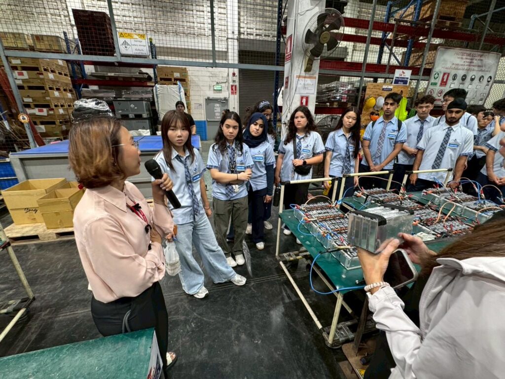 On March 23rd, we departed from Wells to visit Tan Land, Ichitan Green Factory in Ayutthaya, followed by a visit to SK tes. This trip was designed for Gr.12 students who have been studying operations and human resource management in their 2nd year of Business Management (BM) studies, and for some, in conjunction with Environmental Systems and Societies (ESS) studies. A few Chemistry students also joined the trip.
