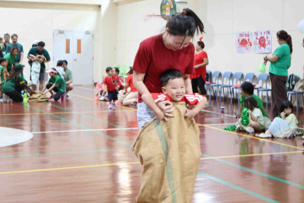 Families joined in for friendly competitions and fun challenges, creating moments of connection and shared celebration. The highlight of the day, as always, was the much-anticipated Tug-of-War—a friendly yet spirited match where all adults, parents, and teachers alike joined the game to defend their team color! The cheers filled the room as the children excitedly supported their parents and teachers.