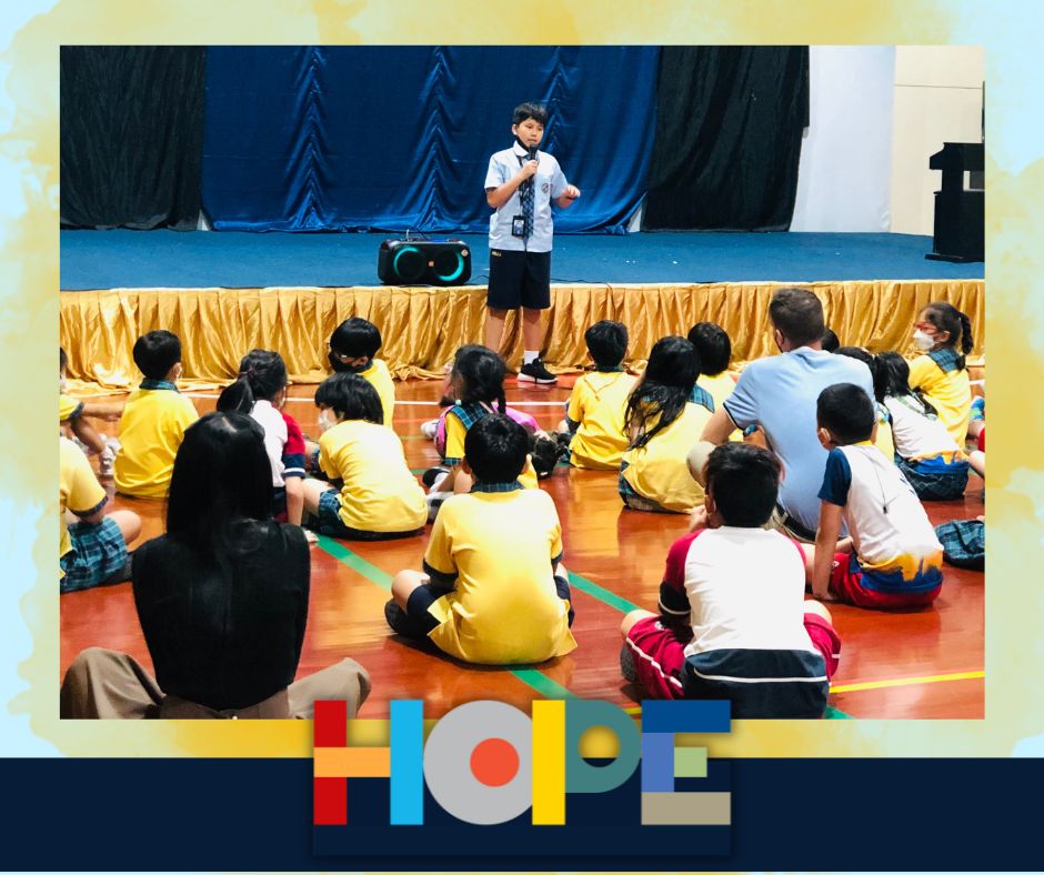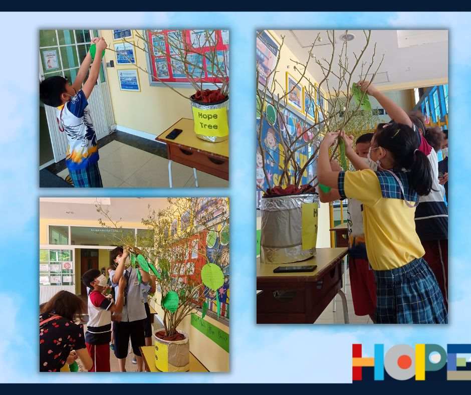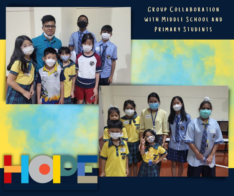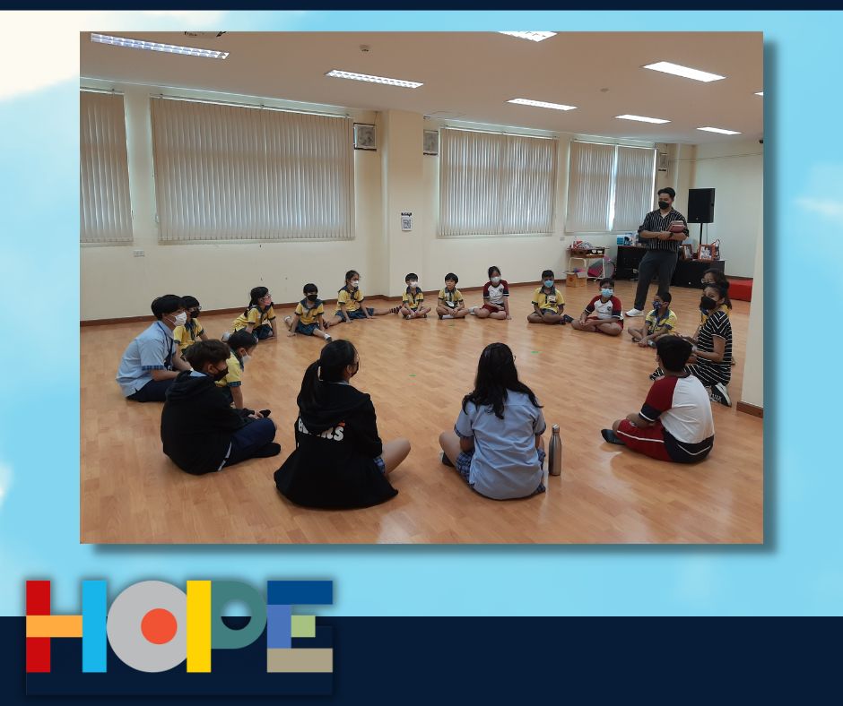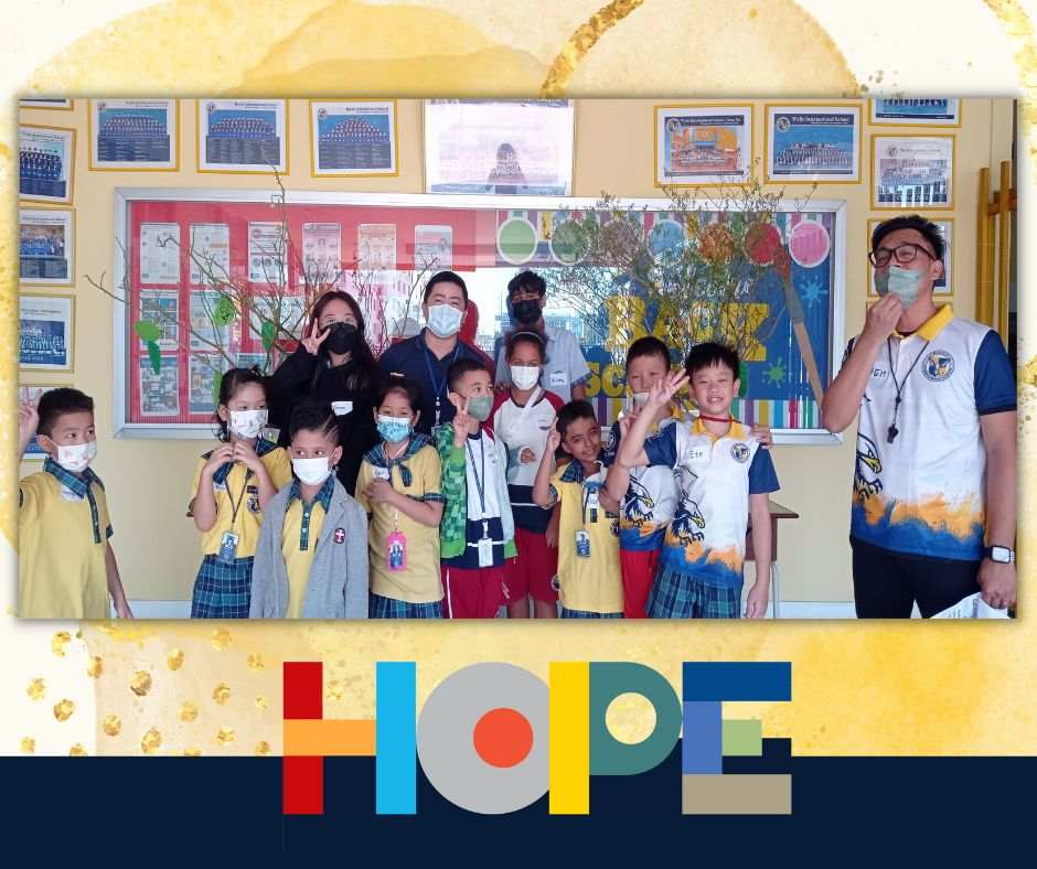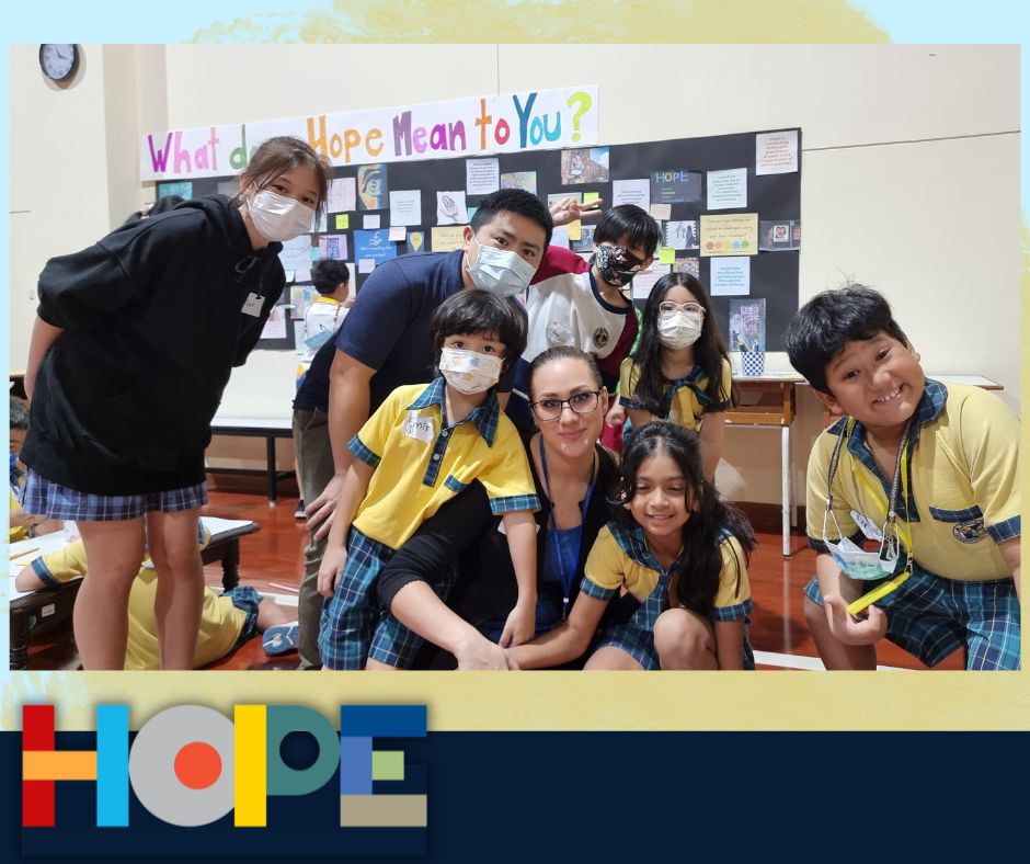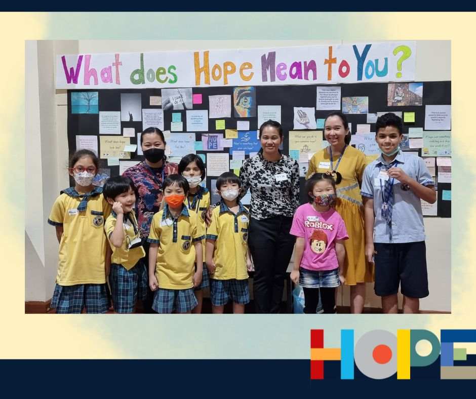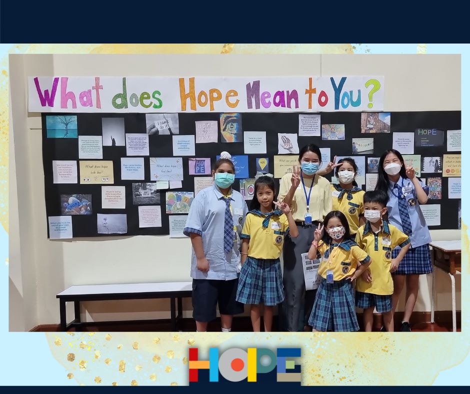 On October 19th, the primary students in the Bang Na campus launched a “Festival of Hope” workshop and invited the middle school students from the On Nut campus to discuss this topic, an initiative taking place in the IB World School community. Hope is universal, it’s a concept that touches all of our lives and hearts, from young to older students. Starting a conversation around “hope”  helped our students engage in activities across grade levels as well as campuses, getting to know new people and students from the school community. Our students spent the entire day discussing their perspectives on hope and its connection to their everyday lives at school and at home.