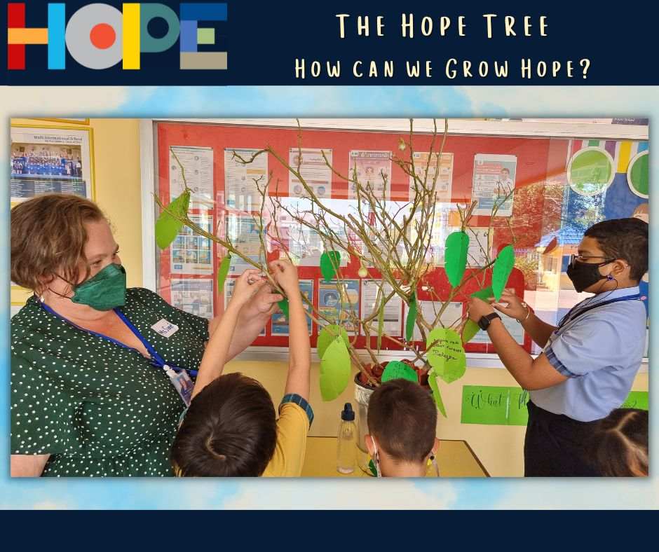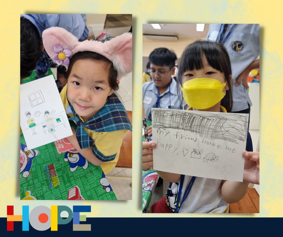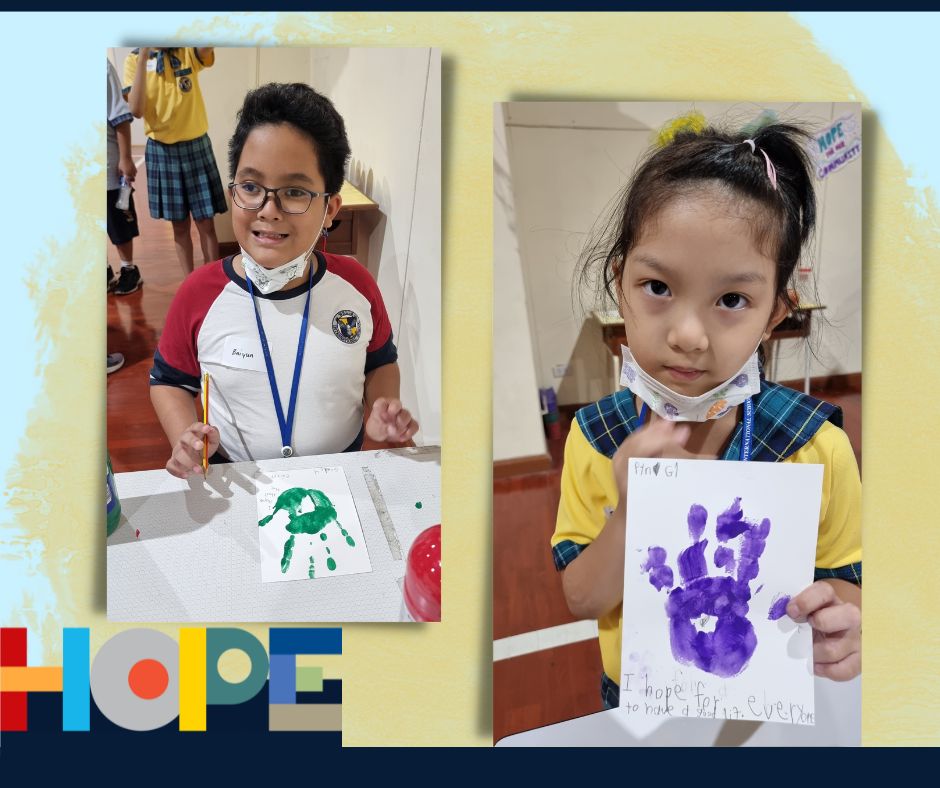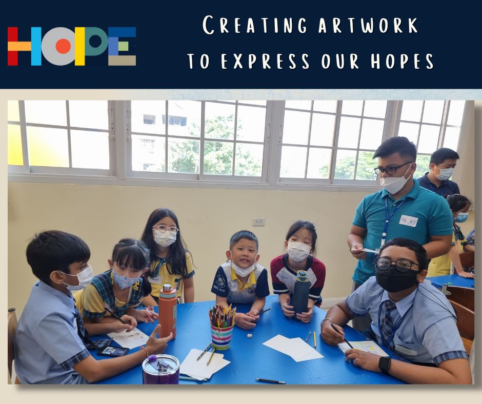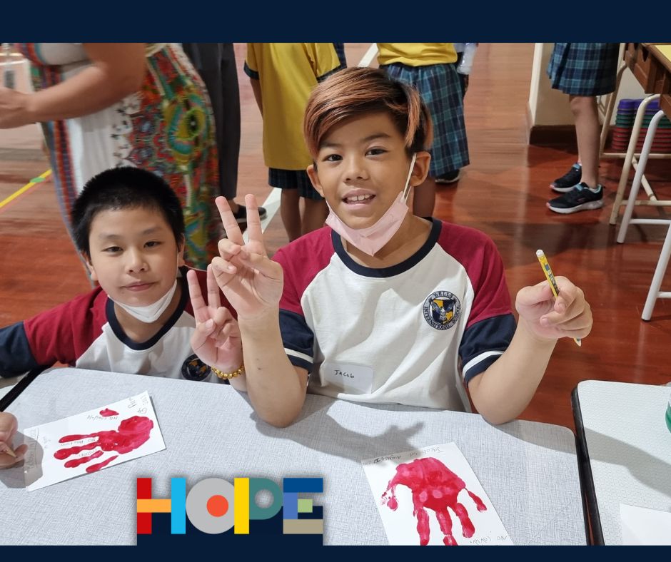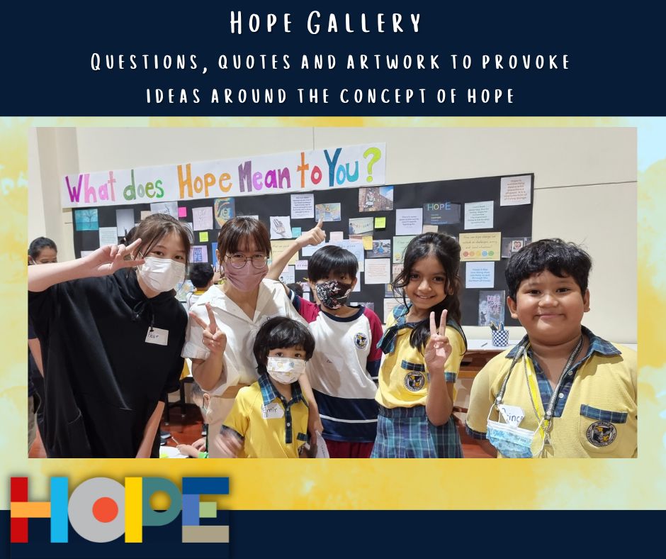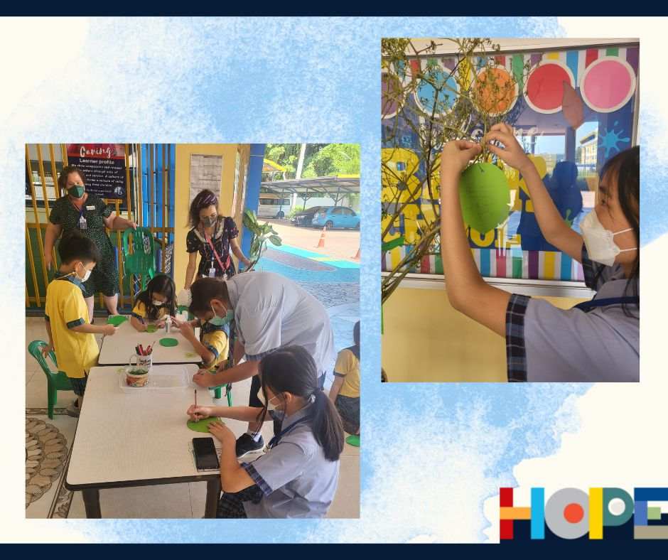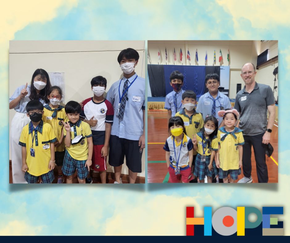On October 19th, the primary students in the Bang Na campus launched a “Festival of Hope” workshop and invited the middle school students from the On Nut campus to discuss this topic, an initiative taking place in the IB World School community. Hope is universal, it’s a concept that touches all of our lives and hearts, from young to older students. Starting a conversation around “hope”  helped our students engage in activities across grade levels as well as campuses, getting to know new people and students from the school community. Our students spent the entire day discussing their perspectives on hope and its connection to their everyday lives at school and at home.