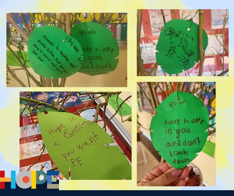 During this event, students moved through a variety of activities that helped them consider how hope is grown and given. The students created artwork, poetry, music and songs that expressed their own hopes and aspirations. At one station, they wrote hopes for the school, the community and the world.
