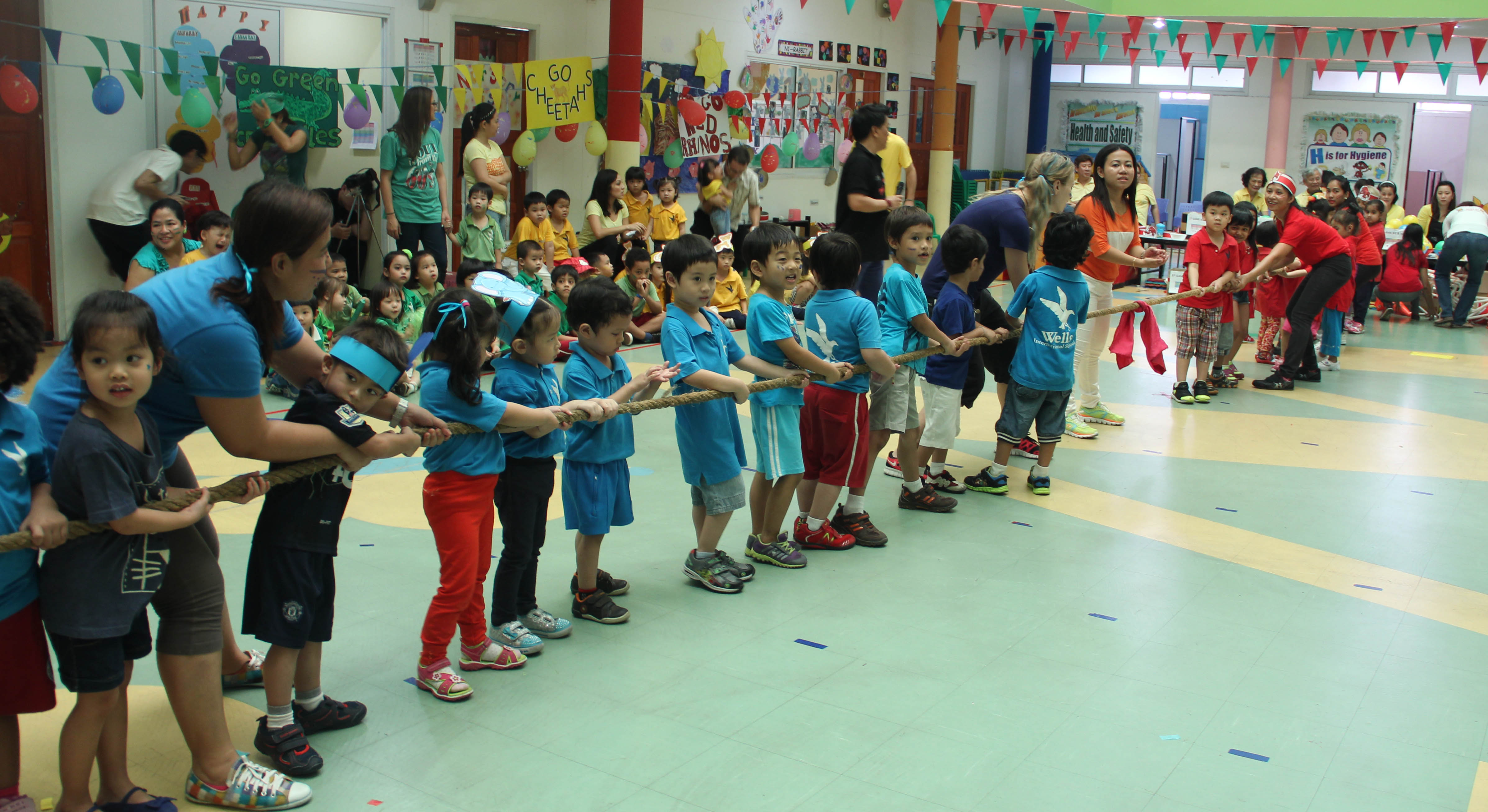 This day was a showcase of the different motor skills that the children learned throughout the school year. Highlights of this event included tug-o-war between parents and staff and the limbo rock. The hall was filled with cheers and laughter.