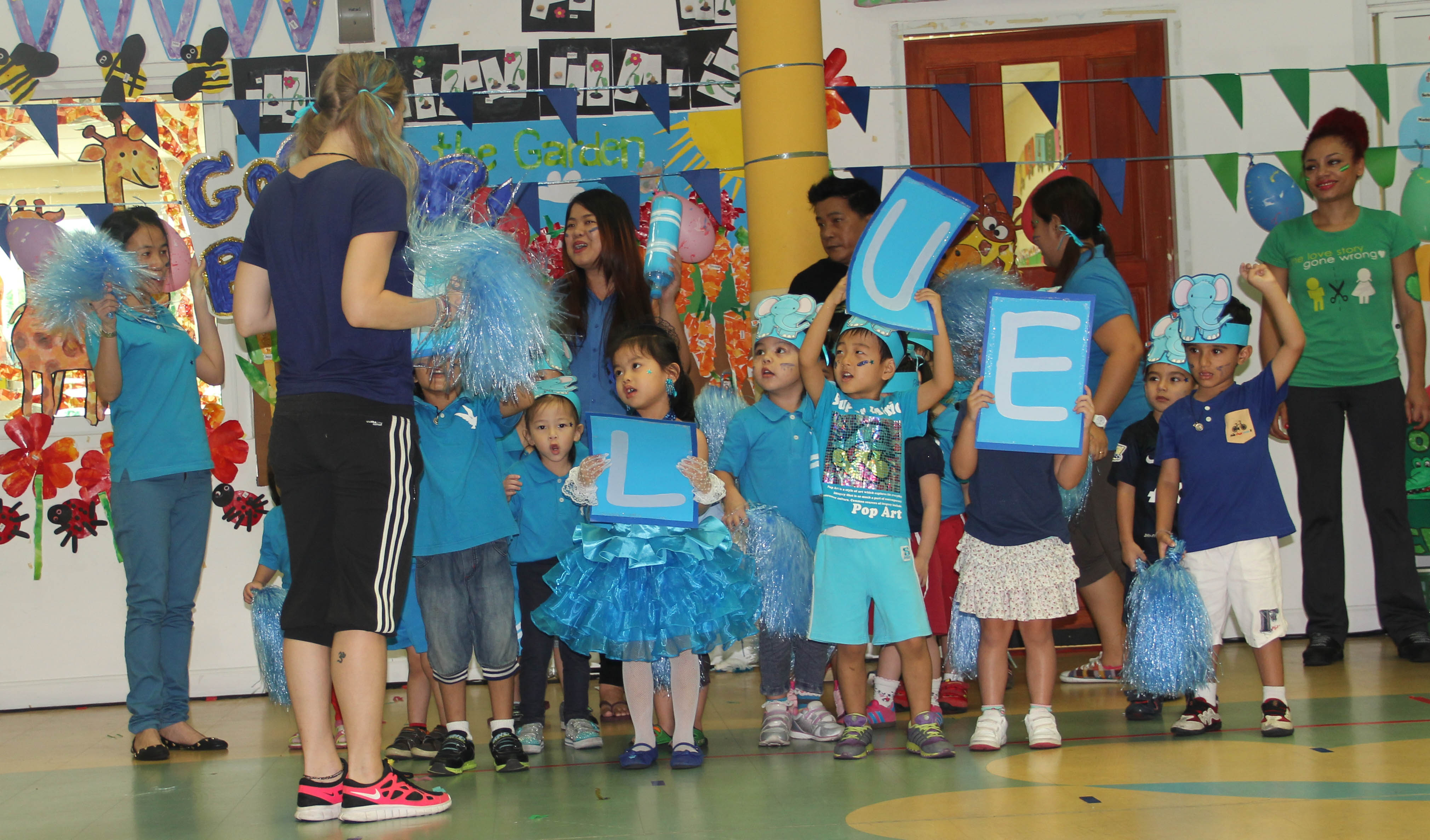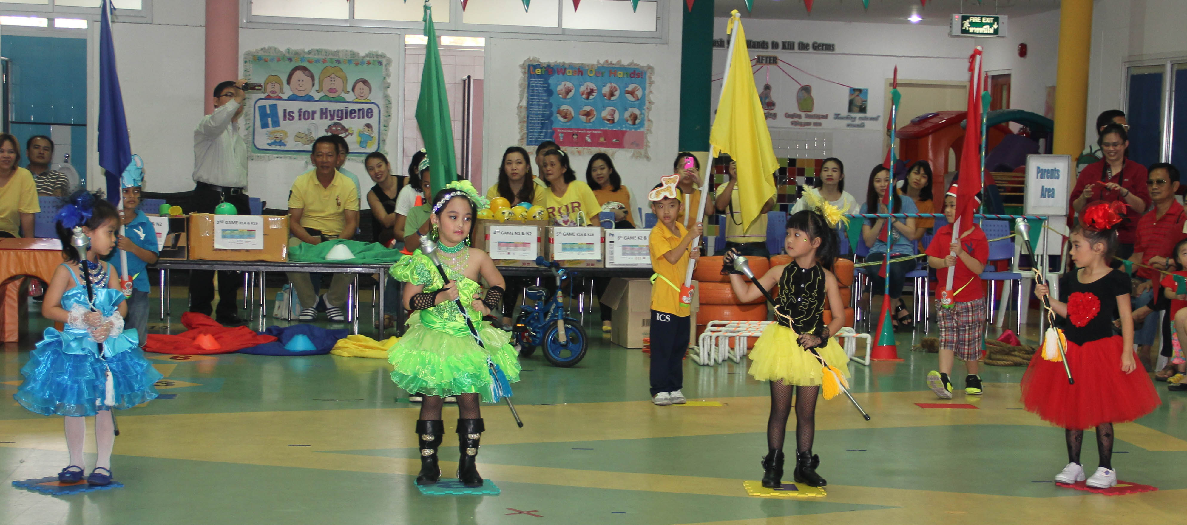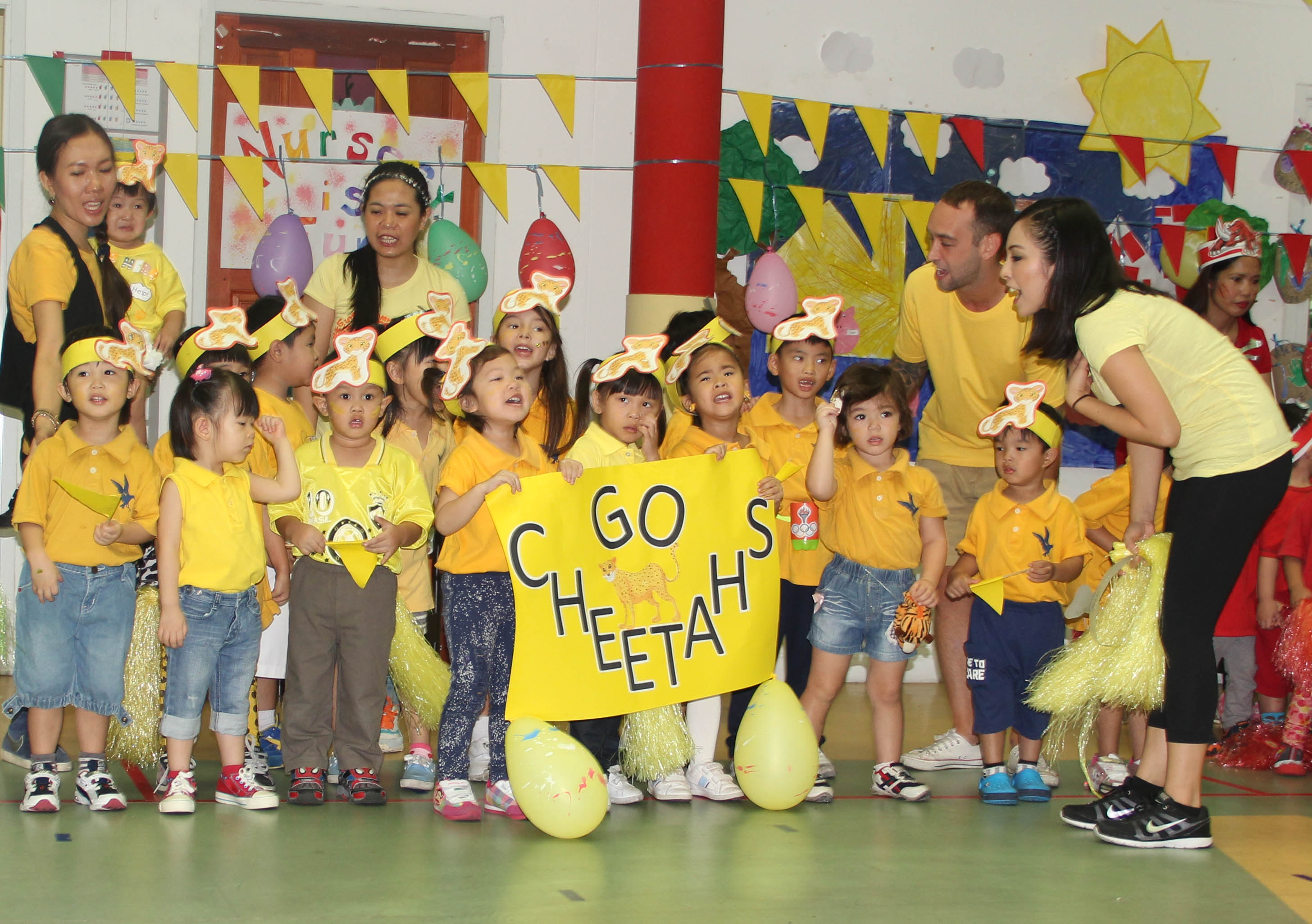Mr. Robert, our K3 homeroom teacher, gave a welcome speech, introducing all the 4 teams, which was followed by a spectacular parade and cheer songs by all 4 teams.