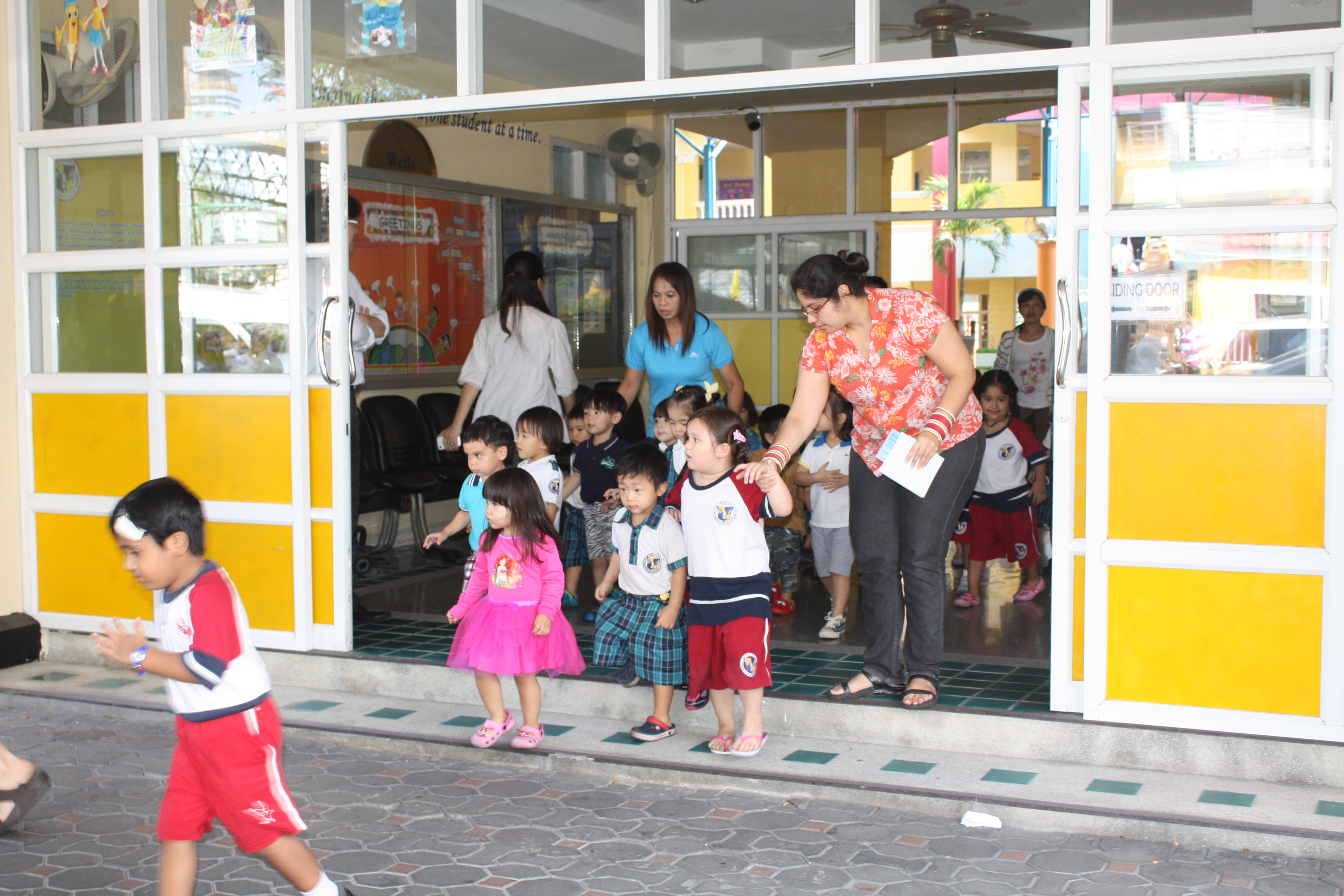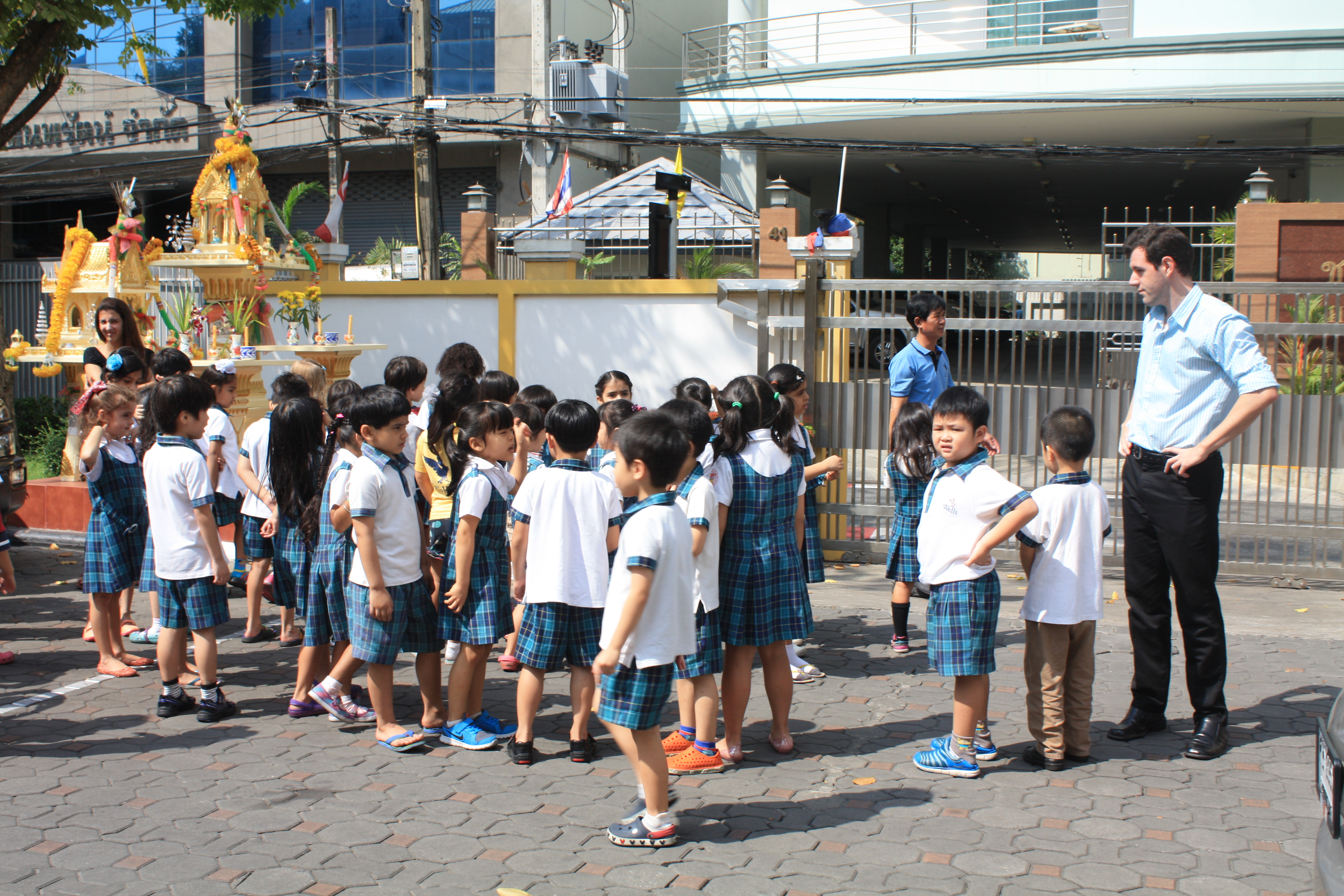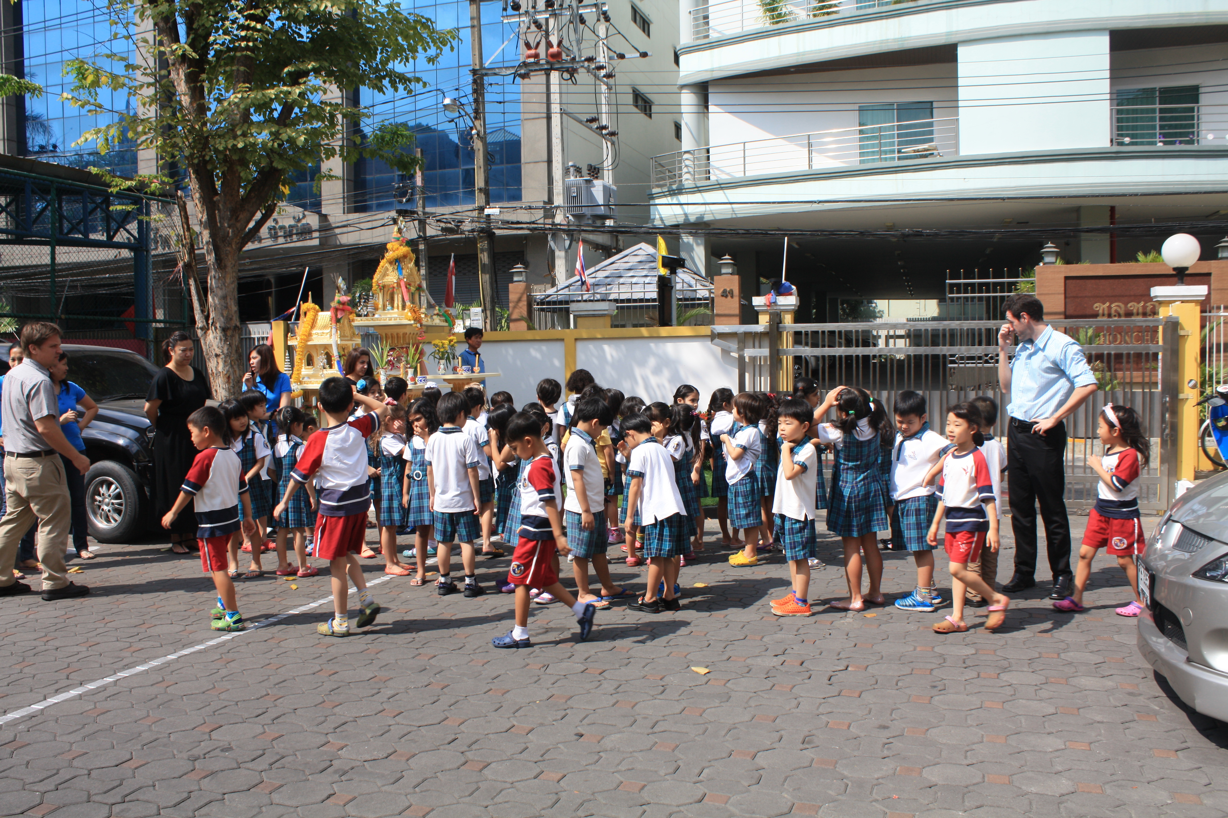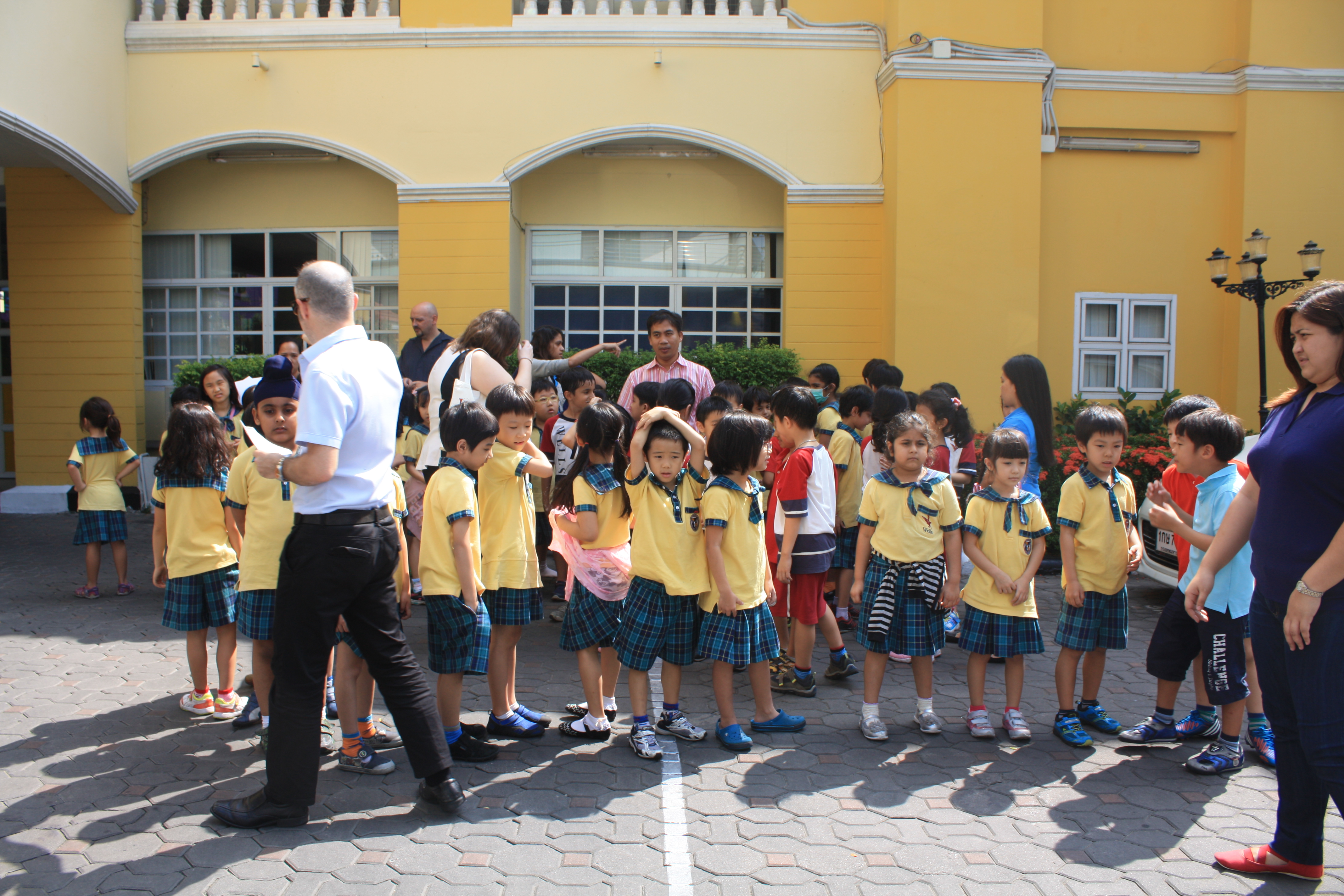 On 11 February, the Thong Lor campus tested its fire alarm system and evacuation procedures. To maintain a realistic situation, teachers and students were only informed that the fire drill would happen sometime during that week. At the sound of the alarm, teachers and students emerged from their classrooms in an orderly manner and marched towards the front entrance. In a little over two minutes, all students, faculty and staff were in the front parking area, the designated place of safety. Although happy that the campus was evacuated at a rate of approximately one student per second, the administration is looking for ways to get everyone out of danger more quickly, while still maintaining the children’s safety.